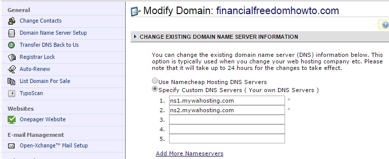 I have a couple of Namecheap domains here are step by step instructions on how to transfer your Namecheap domain to be hosted by WA. Other domains should follow a similar process.