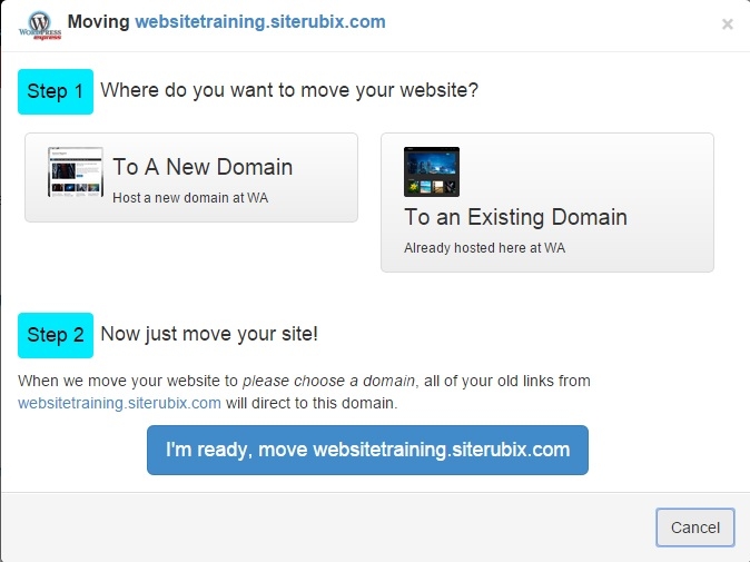 - Click on "I'm ready, move myexistingsite.siterubix.com"