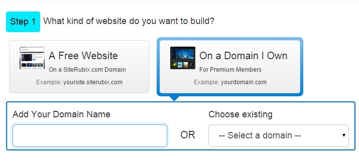 - If you are creating a new site, just click on the "On a Domain I Own" option and enter your domain name