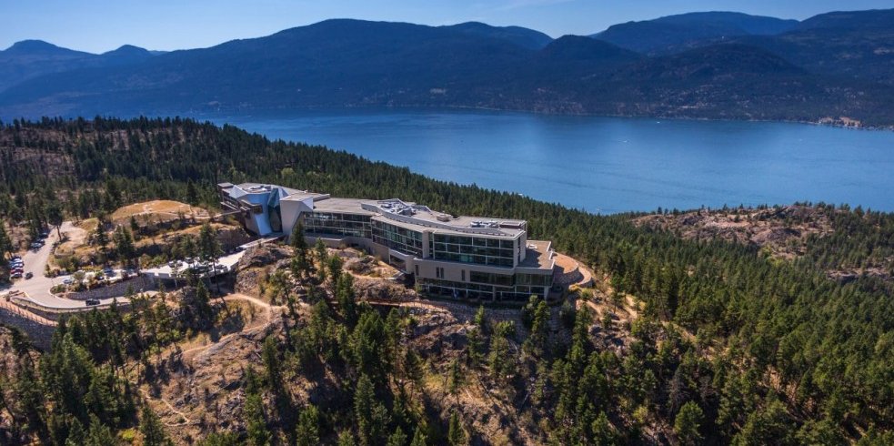 The place is called Sparkling Hill Resort. It is located in the mountains of the Okanagan Valley, about 10 miles south of Vernon. It sits on the top (literally) of a mountain. The mountaintop was literally cut off to build this resort!! The place is 3 miles from the nearest private homes, which look out over the most challenging golf course in North America - Predator Ridge.