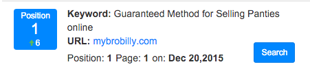 So I recently checked my ranking using Jaaxy and I have an article that is ranked on the first page and first link with this keyword. Guaranteed method for selling panties online.