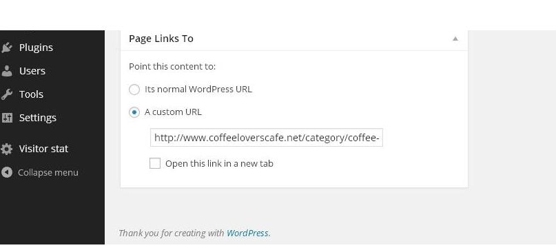 Once your post is categorized and the plug-in is installed, go to the page that you want to have this category appear on. At the bottom of the page, you will see the PAGE LINKS TO. Just plug in the URL of the category page that relates to that menu option and there you have it.