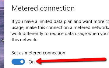 On the Properties page that opens, scroll down to the "Set as metered connection" setting and turn it on.