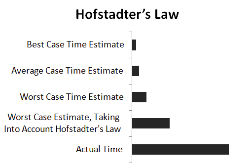 "Any task you're planning to complete will always take longer than expected - even when Hofstadter's law is taken into account." - Douglas Hofstadter, Cognitive Scientist