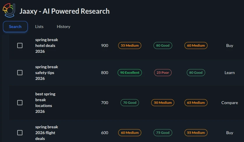 The first two above, Books & Smartphones, can be targeted mainly throughout 2026. However, Spring Break Hotels would only be beneficial to content written before Spring Break 2026 which begins the second week in March and ends the fourth week in March.