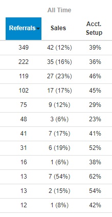 In the above image you will see my current All-Time WA Referral and Sales stats. These 12 results are from the 12 different affiliate links I use to gain referral invitations to WA. Though I do not promote WA full time, I have gained 1,041 Referrals and of those 157 have gone Premium. My Conversion Rate is 6.6 (1,041/157=6.63057…).