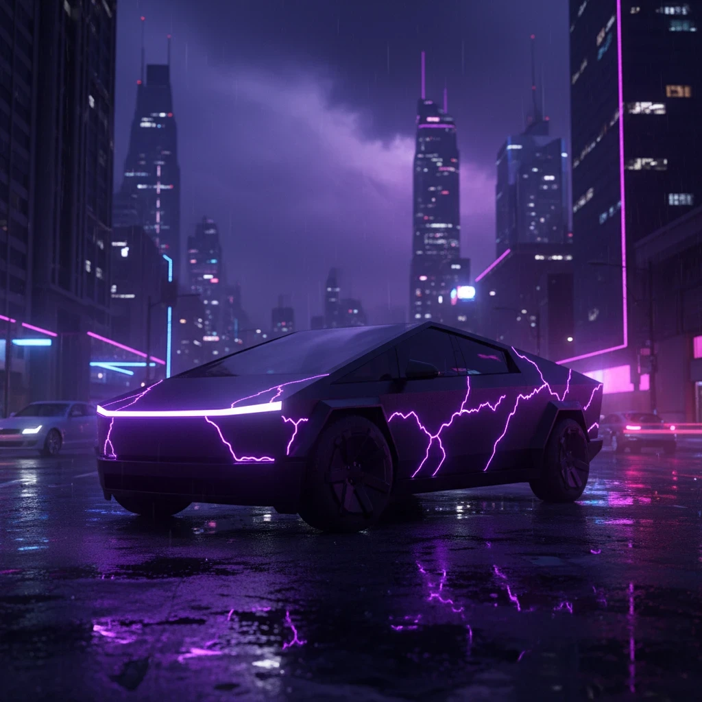 Then I decided to create my neon Cyberpunk version of the Tesla Cyber Truck, if I were to ever own such a vehicle. The current non painted and plain colors of these Tesla vehicles are boring.