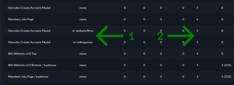As you can see in the image above, I have two links that have Tracking ID's attached to them, "sr-website4free" and "sr-videogames" (#1) arrow. Though I did not receive any Premium Sales from these links, I did receive 5 referrals from the first link and 4 referrals from the second link (#2) arrow.