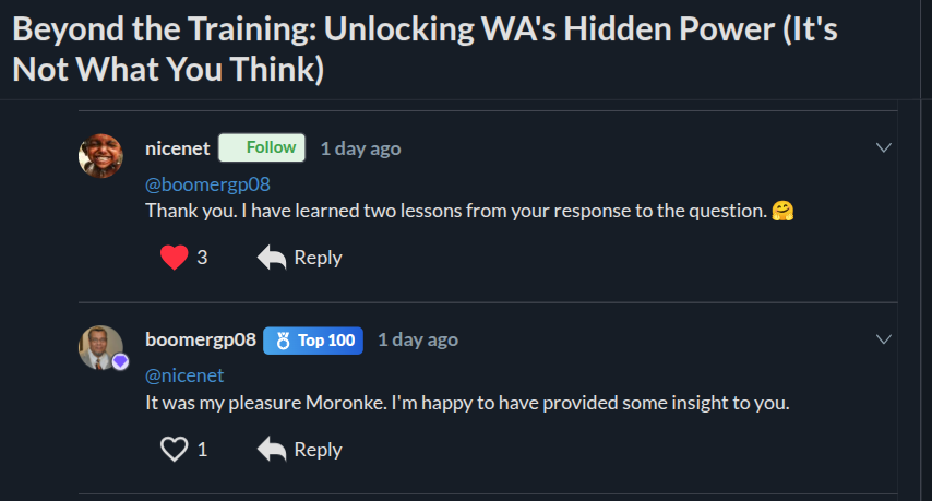 I recently left a comment on the blog called Beyond The Training: Unlocking WA's Hidden Power (It's Not What You Think) by MerelinaFort. My comment was as follows, see below image.