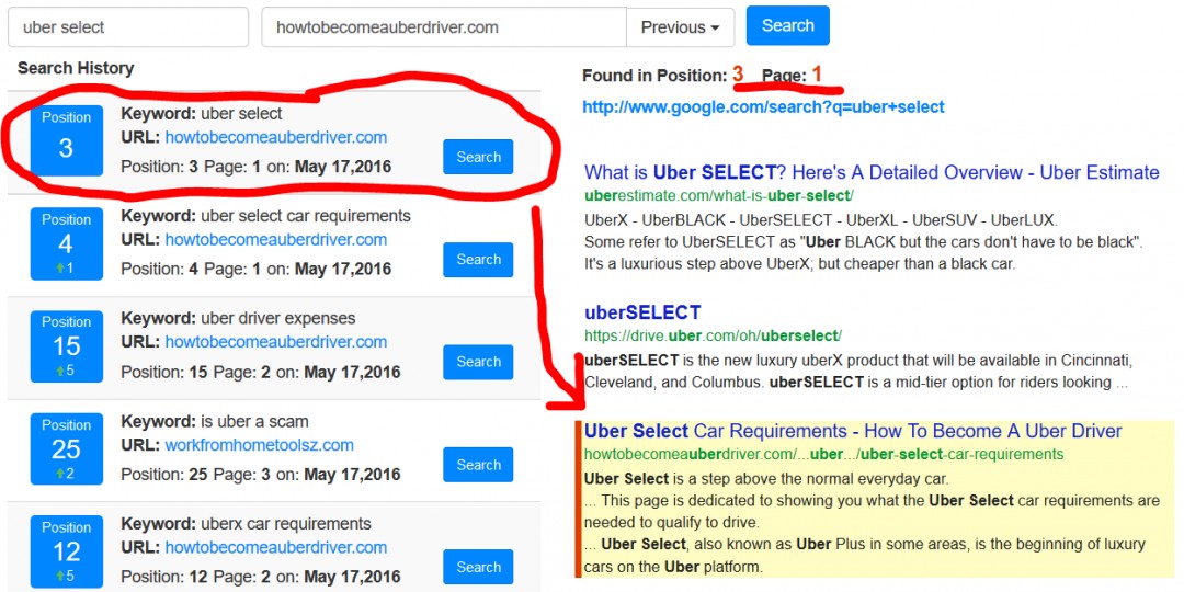 Not only using the long tail version allowed the ball to get rolling on being found and I now rank in the number 3 spot of Google for the keyword "Uber Select" that gets 2700 searches a month.