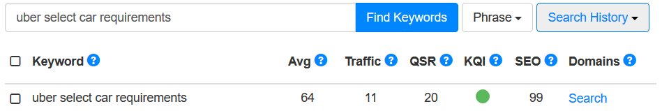 "Uber select car requirements" is the long tail version keyword for "Uber Select"