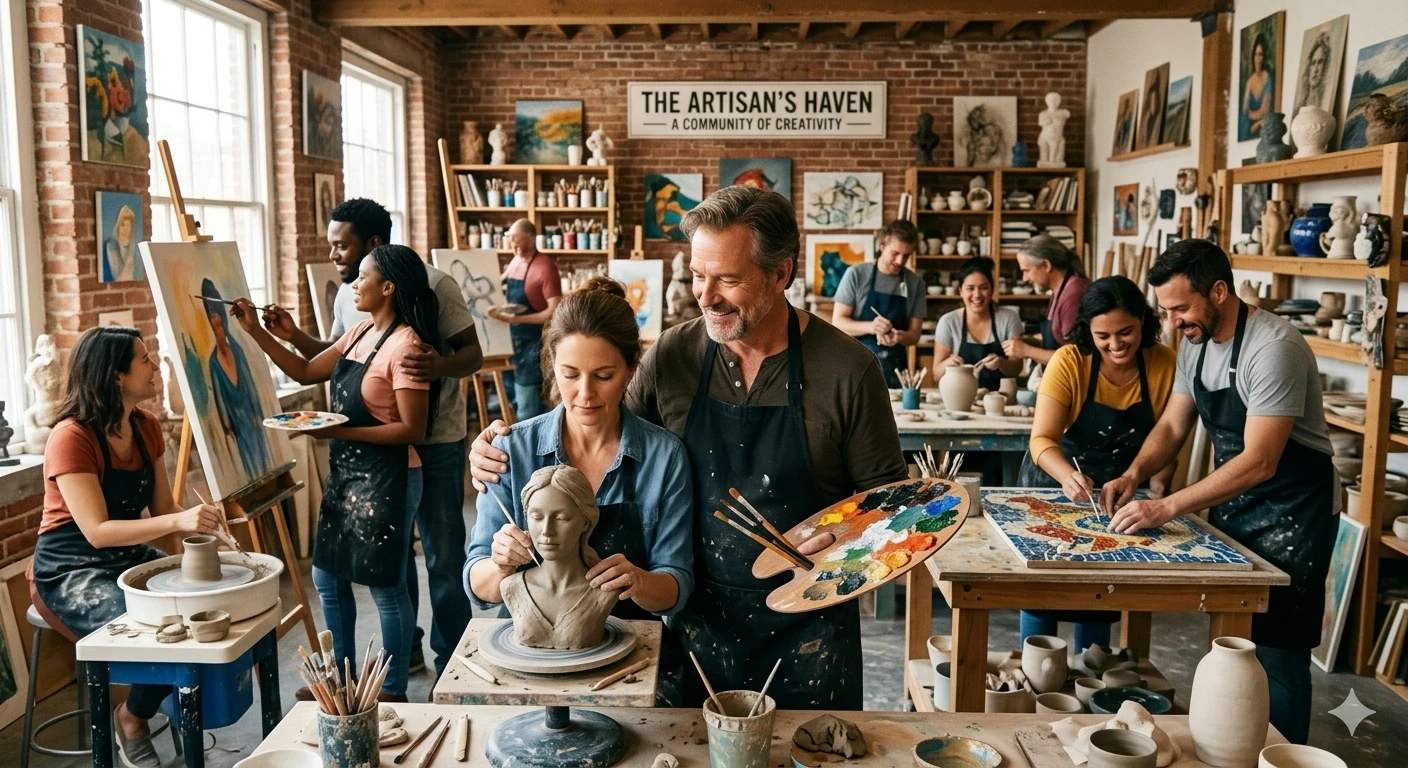 He plops down at the pottery wheel next to Sarah, the overall-clad gal with a ponytail bouncier than her enthusiasm, and Mike, the bearded giant whose hands could palm a basketball—or a bad sculpture. Bob grabs a lumpy clay ball and starts shaping. "Alright, team," he announces, "watch Bob the Sculptor work his magic!"