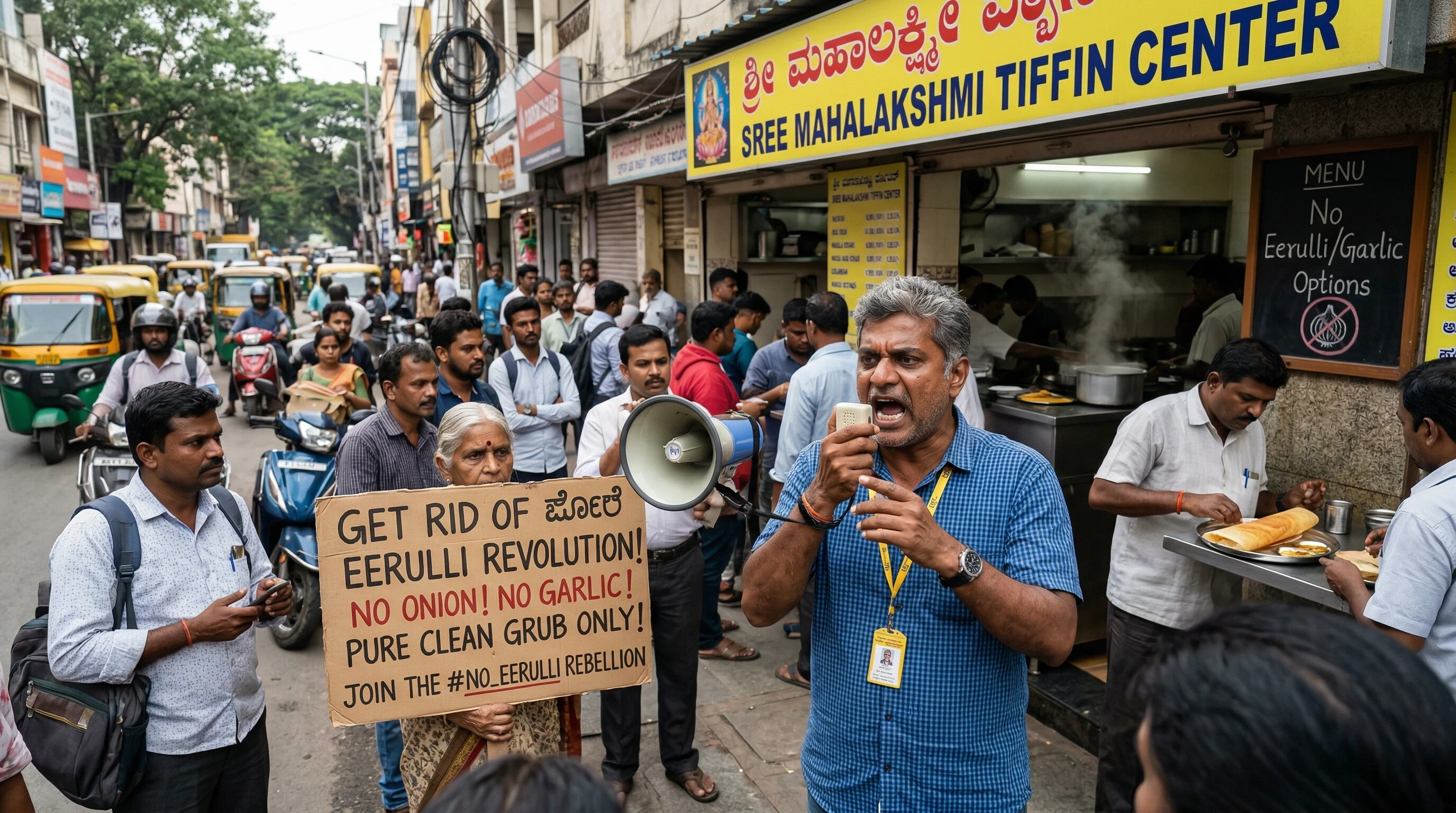 Enraged (and probably hangry), Bob snaps. "Enough!" he declares one masala-dosa morning. "We're launching the Get Rid of Eerulli Revolution right here in Bengaluru!" His mission? Spread awareness for the "chunks" of people like him—folks who want zero onion, zero garlic, just pure, clean grub. No more hidden eerulli assassins in their aloo gobi!