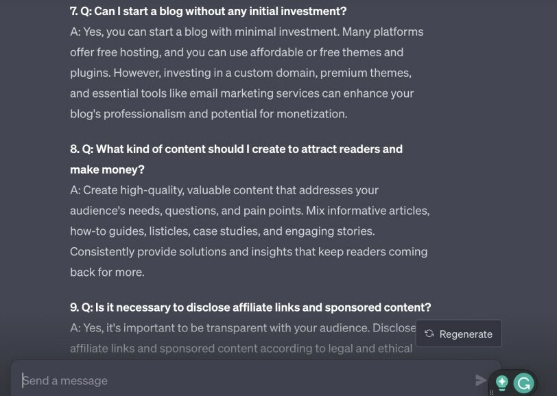 Photo screenshot ChatGPT gave me what I wanted for FAQ on a blog post.