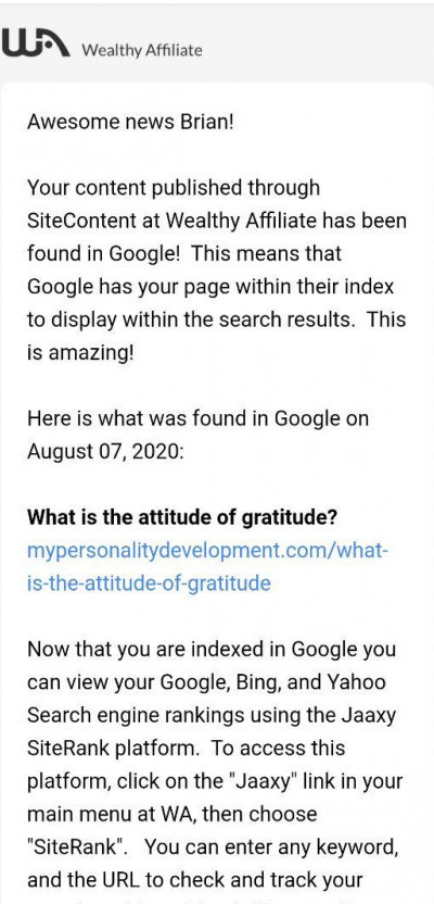 This is to document my progress in WA and at thesame time share my results to newbies like me. I was really puzzled by Google indexing because my posts are not indexed the way I expect them to be. I have an article written just few days ago and it was indexed already. But I have an article written more than a month and yet it was not indexed until yesterday.