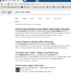 My post "Does cycling help you lose weight" has appeared on Google page 1 via google plus. as "Want to lose weight-ride a bike".
