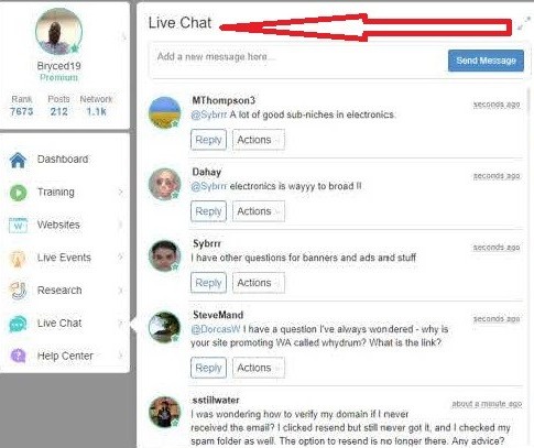 Another valuable training resource is on the live chat. The live chat is an ongoing forum used by the members to ask questions and get answers 24/7.