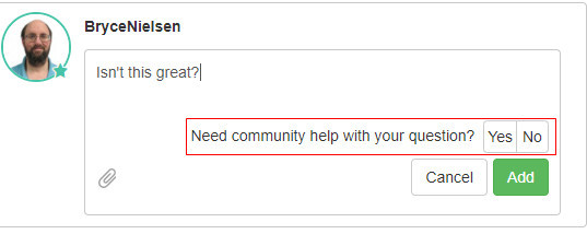 The option to say if you need Community Help with your question appears automatically any time you enter a question mark inside a comment. If you don't want community help from just anyone for your question. Please select No.