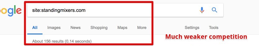 If that site is nowhere to be seen, or only ranks for a few of them though, then it's probably a weak site. This means that the keyword it ranks highly for is probably a lower competition keyword too, since a weak site is ranking for it.