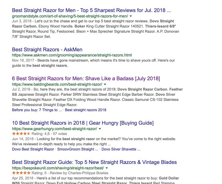 Instead, let's look what happens when we search for "Best straight razor" instead of just "straight razor".