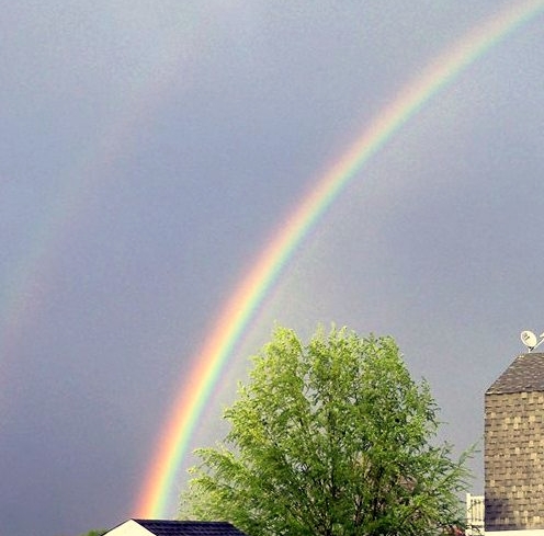 If you look to the top left of the picture you,ll see a very faint second rainbow. I understand there are always two rainbows. Most of the time only one is visible.