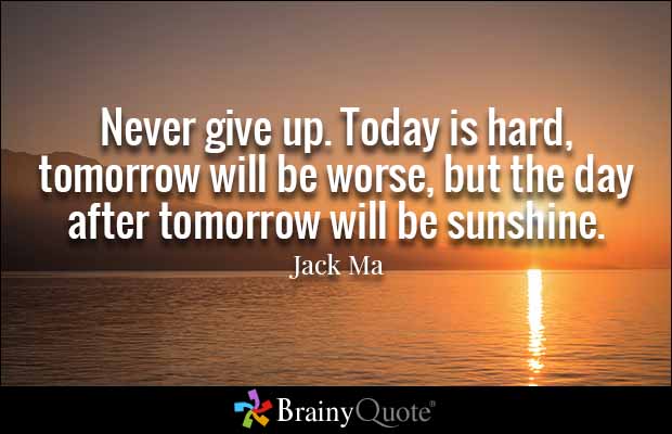 Sometimes I wonder what if quit today not knowing that tomorrow it could all turn around? I would have missed my opportunity. That's why I stick with it.