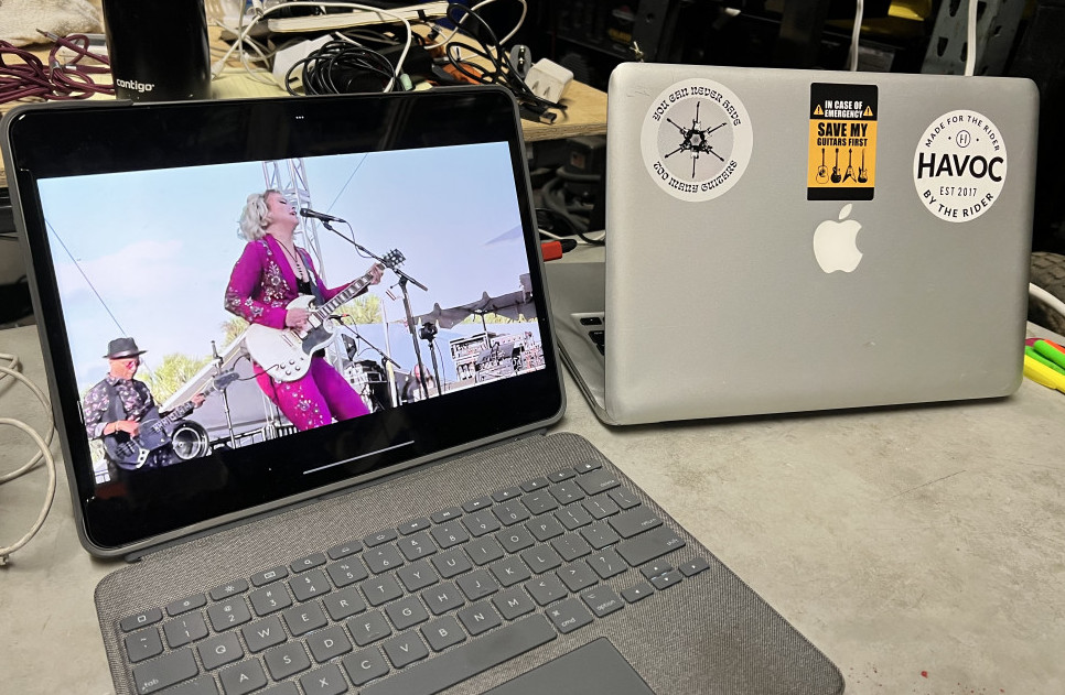 Ah, there she is again at Saint Petersburg Florida at their Blues festival and again I am taking pic with the " In case of emergency SAVE MY GUITARS FIRST sticker this time on my mobile recording studio, MacBook Pro that goes with me everywhere I go.