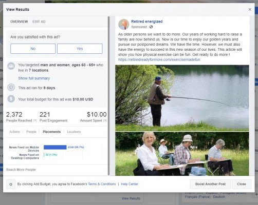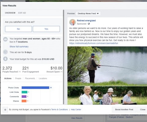 Very interesting. Boosting isn't the same as posting an ad? You can't select a demographic, eg to prevent it being 'boosted' to the Middle East? I'm guessing not. But with this info it may be worth considering ads.