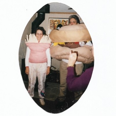My masterpiece was when I turned my husband into a Big Mac, and I was the French Fries. I used a hula hoop as a frame for Big Mac's bun, but neglected to measure the diameter of the hula hoop. The bun was too big to go through the door, and he had to take his costume off to enter the house where the party was being held!