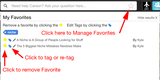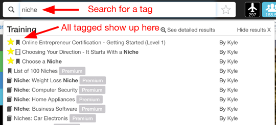 Keeping track of training, blog posts, live training webinars, or questions within Wealthy Affiliate is now a lot easier. Adding, removing, tagging, and searching for favorites is simple and totally integrated into your search.