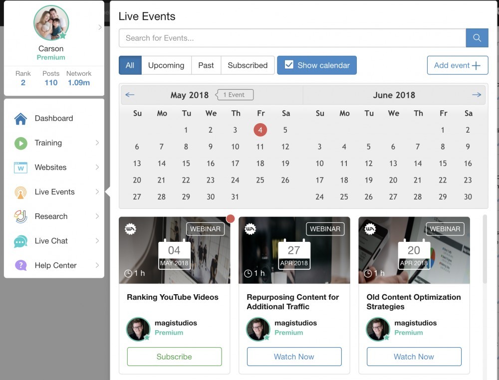 We are also going to be showing you the exciting education in a much more visible manner as we are going to be scheduling months of live training at a time so you can see upcoming training that is going to be taking place. For the person holding the event, it is easier to be prepared. As the person viewing the event, it is nice to see what is coming up! Keep an eye out for many more "RED DOTS" on days within the events calendar to show up soon. You can subscribe to any of them as a Premium member :)