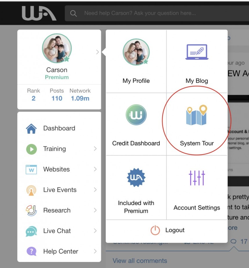 - Live Chat. If you need instant support, want to help others within the community looking for instant help, or are carrying on an ongoing conversation, you can access a Live Chat directly within the main menu. This will notify you when new questions have been asked (a green count), as well as when someone has replied to you within the chat. This will allow you to efficiently multi-task here within the WA. Also, lets say you are stuck on something within the training, you can simply pop open this live chat and ask any questions you may have. It is ultra efficient and useful. We have also redesigned the live chat interface. It is much cleaner.