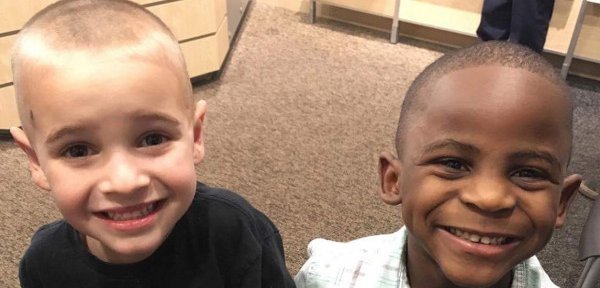 These two boys wanted to play a trick on their teacher. They wanted identical hair cuts so they could look alike to confuse their teacher. If only the world could think like them. Enough said!