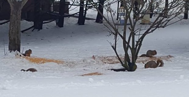 I was going to write something about making a review template for Site Feedback but instead I give you a picture of some overly fed animals. I got a little crazy with the squirrel and bird food. I mean, it is Christmas. :) I didn't get the picture, but I caught seven squirrels out there at the same time once!