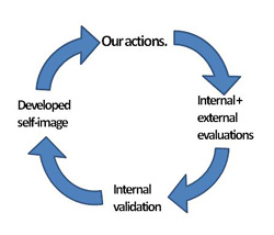 4) These self-image truths, whether true or not, are now true to us, and will guide us towards our actions in the future, as we need to justify these beliefs by living up (or down) to them, which in turn, reinforce those ‘truths’ so that we may remain correct in our self-evaluations. Unfortunately, until we become conscious of this nasty little trick, perpetrated on us by our insecure egos, its opinions of ourselves are all we seem to have, and heaven forbid we be proven wrong about how we think of ourselves, and have to reevaluate ourselves from scratch, as this would place the responsibility of our performance entirely upon our own shoulders.