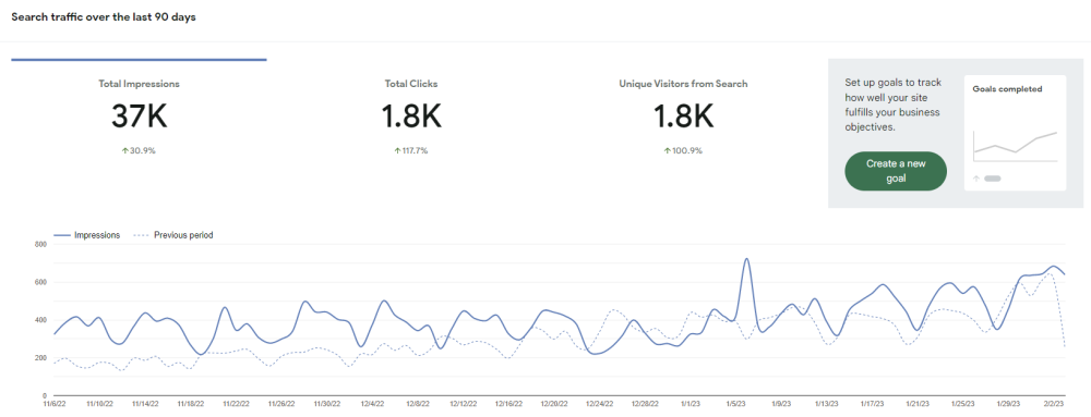 Traffic on this website is now averaging 15.5K Impressions each month.