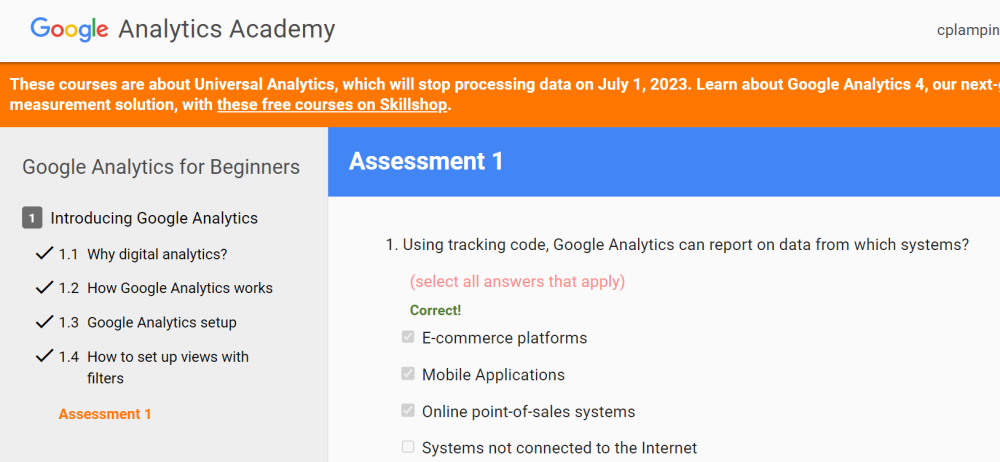 Last night, I completed Google Analytics for Beginners. It is never too late.
