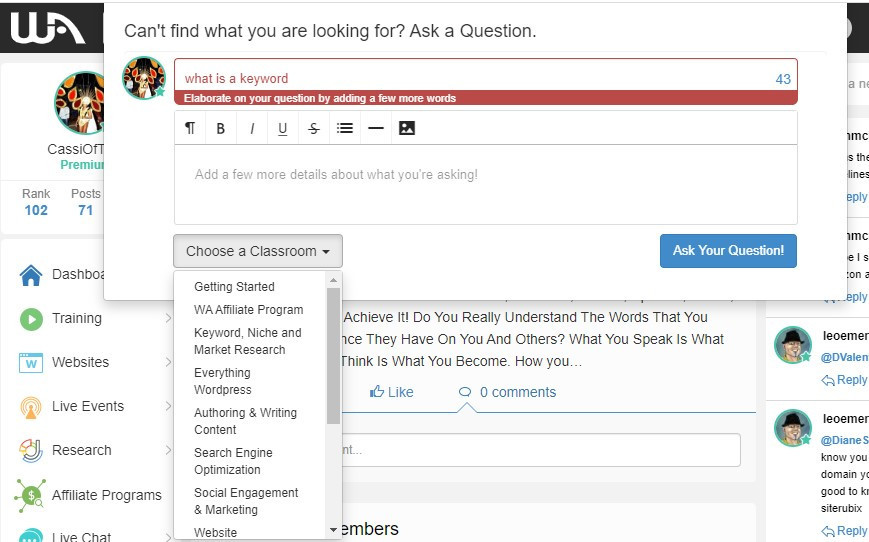 You have the opportunity to choose a Classroom (Subject area) to better help you direct your question to receive meaningful help or support.