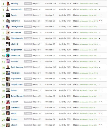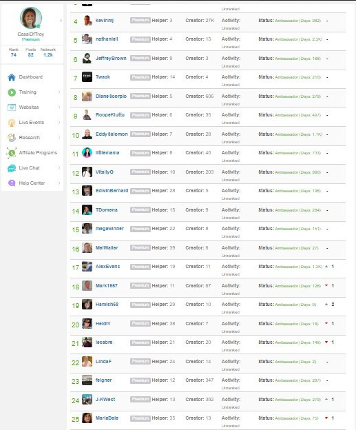 Rankings. When I first came in, I wasn't the least bit interested in rank or followed me. Thats changed over the past 8 or 9 months. I've come to really enjoy engaging with our community. We share ideas, thoughts, insights and so many other things.Yes, we have OEC, Bootcamp, Jays webinars, and too many other trainings to mention. Thats all well and good, and the lessons are invaluable, but there is so much more to gain by reading blogs, interacting with our community and such. Yes, yes, yes, build our businesses and create a path to our goals, and this is the primary reason for me being here. But its also about the side learning, about asking and answering questions, and creating some very good friendships. And it's also a good feeling when someone reaches out to you thanking you for helping. The social side of WA is one I would trade or ignore. Thanks Cassi.