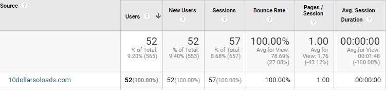 As we can see, a 100% Bounce Rate, and a 00:00:00 Avg. Session Duration is a sure sign of bot traffic.