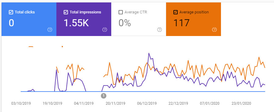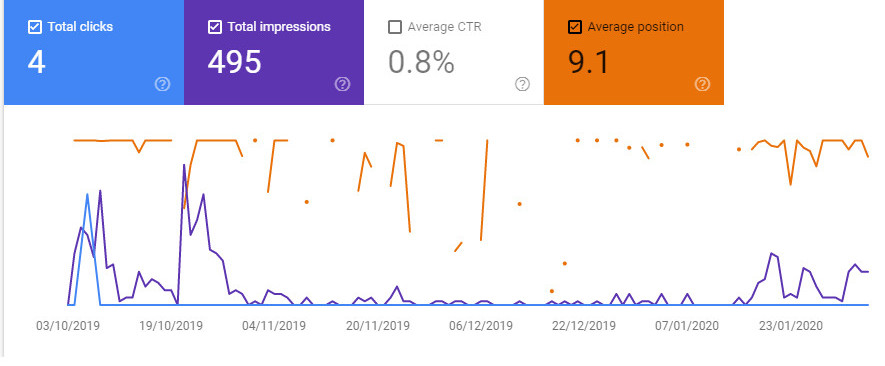 I know I have 4 clicks on the Web graphic but they were made by me and also half of the impressions too (I was eager to see results on google so I was always searching for my website).