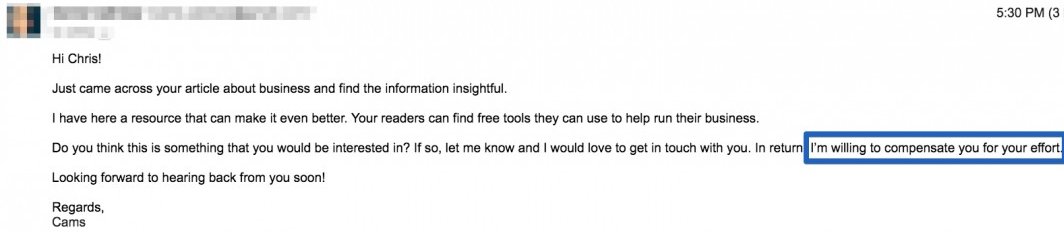 PS: Here is an email that I got today from a potential customer. This is how a "sponsored post" opportunity may come to be: