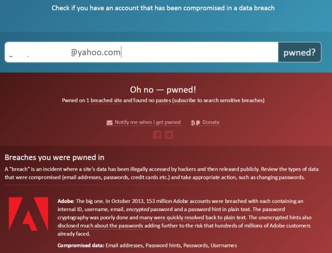 Not a surprise quite frankly. I've changed passwords several times since that Adobe breach back in October of 2013 so I'm not overly concernced.