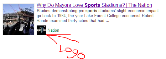 Schema is something I really don't understand. I've never had to use it, although I've wanted to try many times. The result shown above is a search for "Sports" If you search for that term you'll see the image I showed is the very last result making it the third in-depth article. It's also the only one using the logo markup.