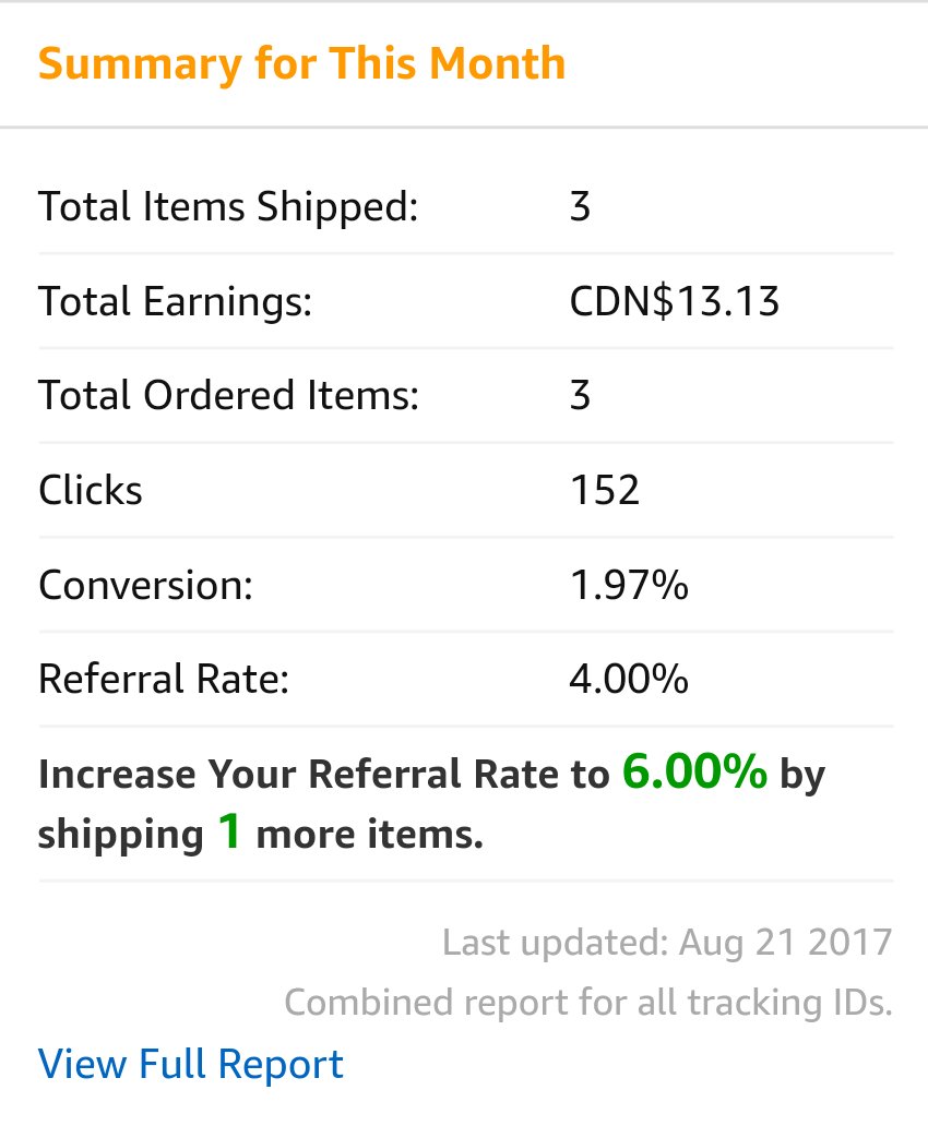 Today I logged into my Amazon Associate account to find this waiting for me! It's not huge and doesn't cover my fees as of yet BUT it is a START!!