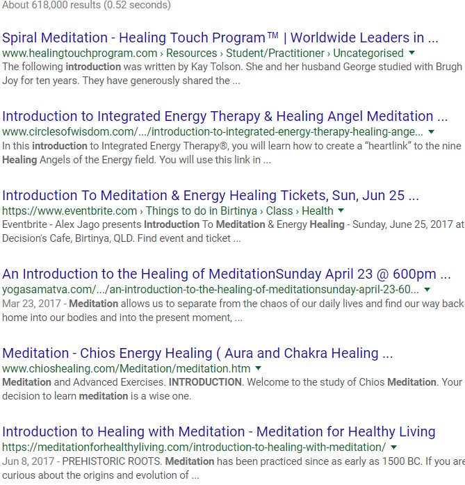One of my posts "Introduction to Healing with Meditation" is ranking no. 6 on Google (I checked it incognito this time!).