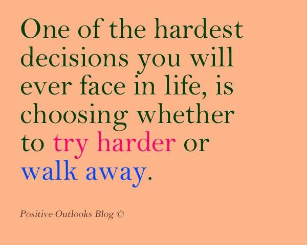 Every decision in life requires this decision. Walking away is not giving up it's just letting go...it's putting you on a different road to end up in a different location.