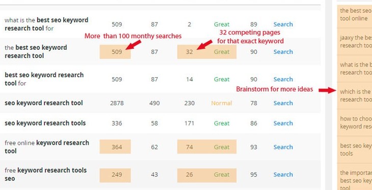 About a month ago I decided to upgrade to pro membership. Even though it costs money, I must admit it is a worthwhile investment. I am able to work faster on my keyword research. A single keyword search will normally give you 4-5 competitive keywords that you can use for your articles. I usually follow Jays ‘+100/-100 rule'.