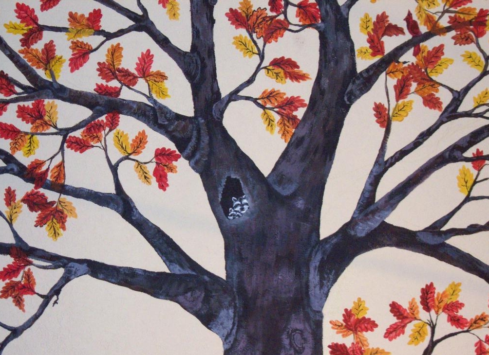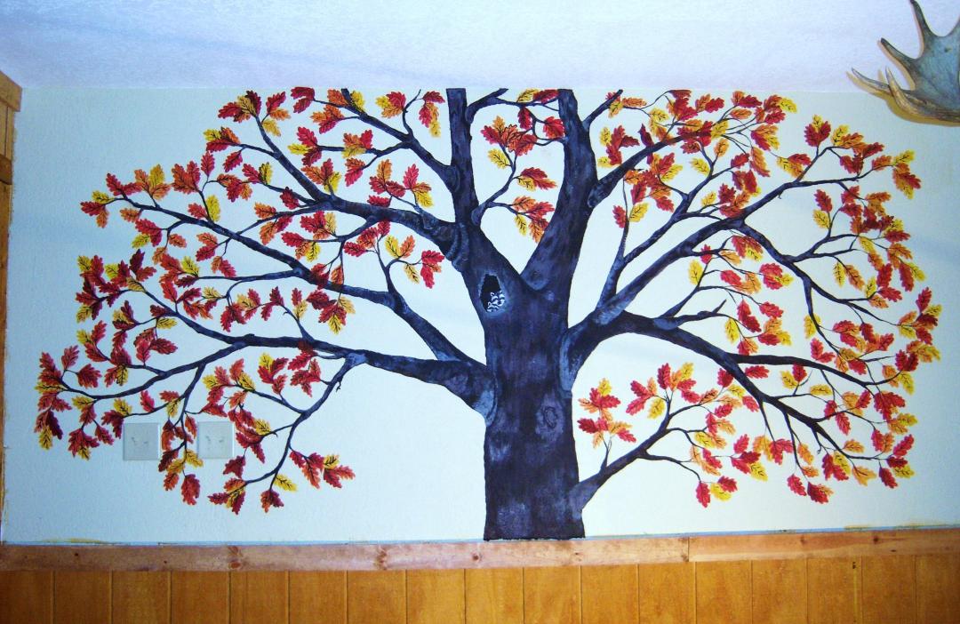 Arrived home ... safe and sound ... about 1:00 am. I finished painting the wall mural ... the "family tree" earlier this evening. Turned out pretty good ... except that now Steve says he's not sure he wants to hang pictures on it! lol