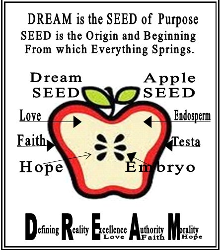 As we noted in Part II, The Elements of Dream SEED Parallel those of a natural seed (ex. apple seed as shown above) and these same elements do possess similar characteristics.